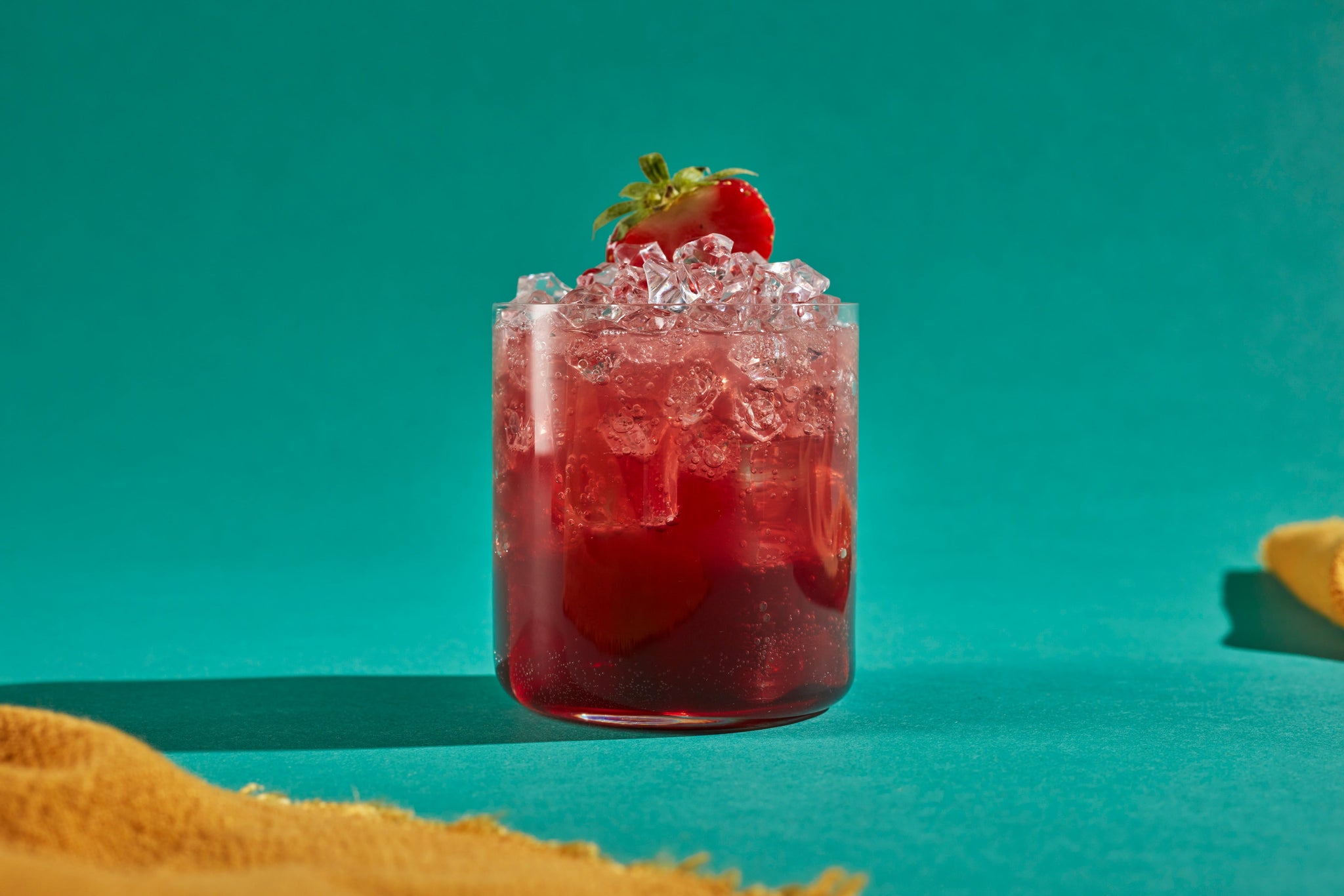 SHAKE & TOP . . . Add all the ingredients except the Rich Berry to a shaker. Add ice and shake. Pour all into a rocks glass. Then drizzle Rich Berry on the top. Garnish with Berries.